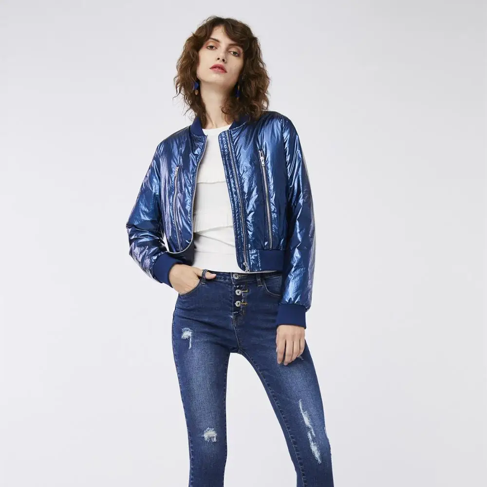 Super Deal 2019 Newly Winter Women Glossy Down Jacket Casual Zipper Short Solid 90% White Duck Down Parkas Wat