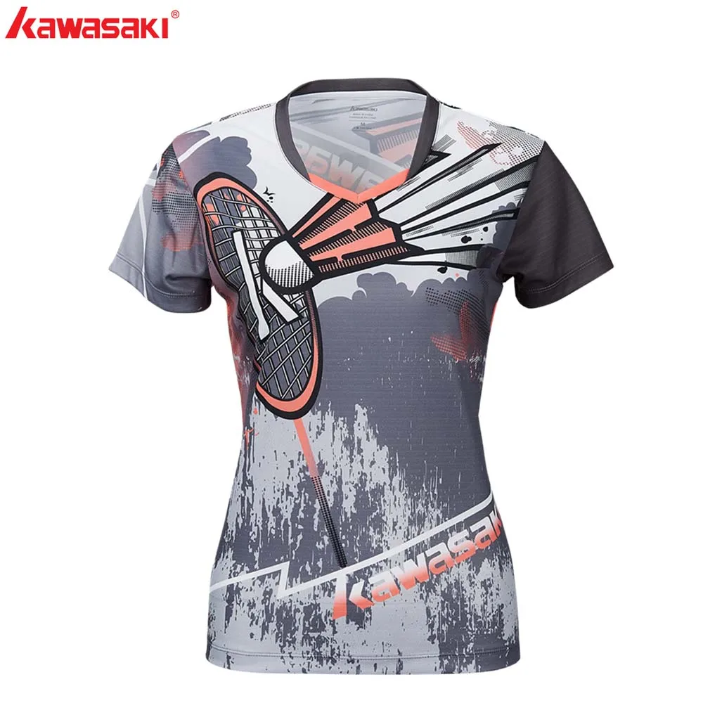 Hot Price Kawasaki Clothing Badminton Shirt Women Shirt V-Neck Short Sleeve Polyester Breathable Sportswear F