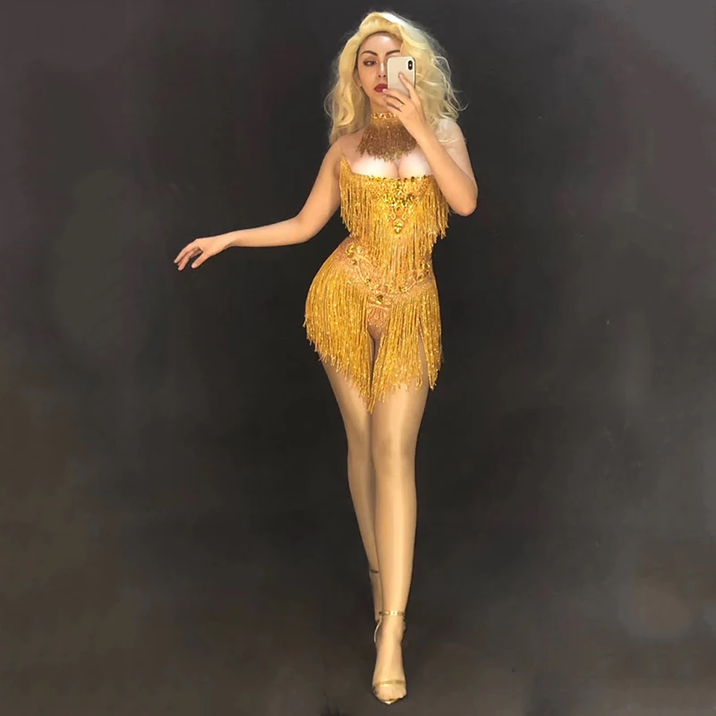 Mega Discount Sexy Bodysuit For Woman Tassel Jazz Dance Clothes Pole Dance Rave Outfit Nightclub Dj Performance C