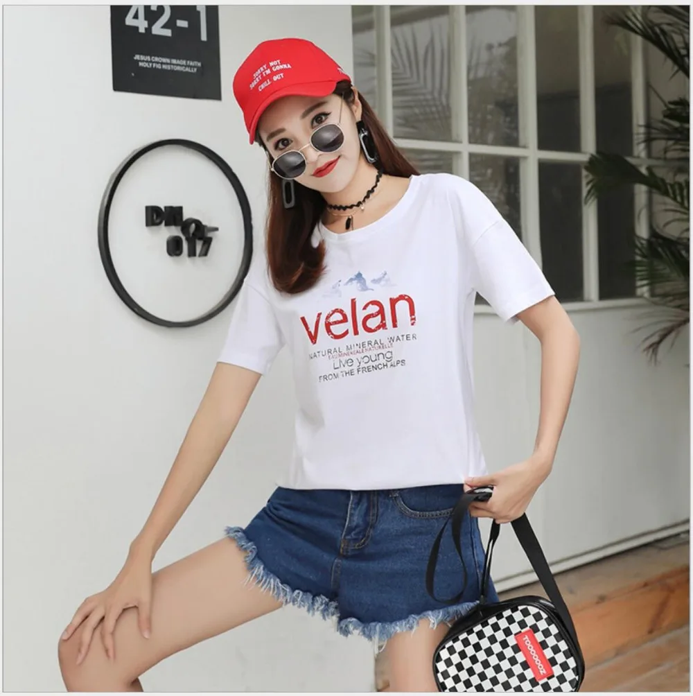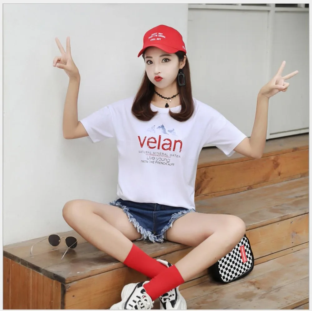 Best Price Fashion Letter Print Women T-shirts tops White Short Sleeve Casual tees FOR Lady JY1004