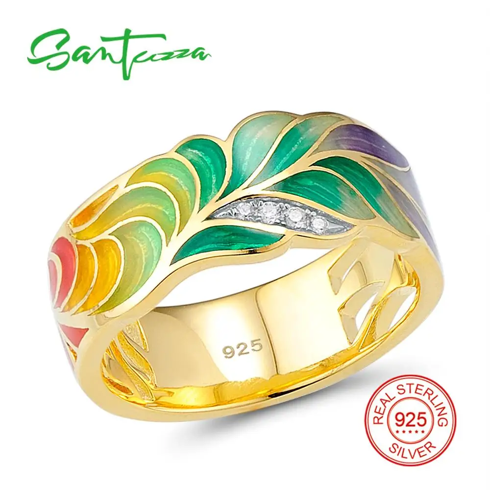 Best Seller SANTUZZA Jewelry Set For Woman 925 Sterling Silver HANDMADE Colorful Enamel Flower White CZ Ring Ea