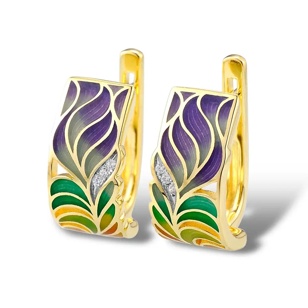 Super Sale SANTUZZA Jewelry Set For Woman 925 Sterling Silver HANDMADE Colorful Enamel Flower White CZ Ring Ea